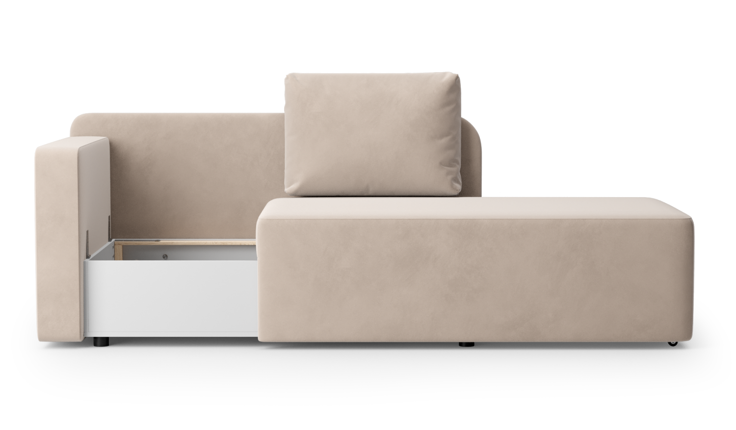 Диван-кровать Роум — компактный, раскладной, уютный и вместительный диван с мягкими подушками. Небольшой и функциональный диван-кровать с легкостью впишется в любой современный интерьер и пространство, будь то детская, кухня или спальня. При необходимости сиденье с помощью роликов выкатывается в сторону и подлокотник кушетки откидывается, превращая ее в односпальную кровать. Под сиденьем располагается вместительный ящик для белья. Главное достоинство данного изделия - комфорт сиденья для отдыха и сна. Диван оснащен высокоплотным ППУ-матрасом, который в сочетании с независимым пружинным блоком обеспечивают ортопедический эффект и здоровый сон.