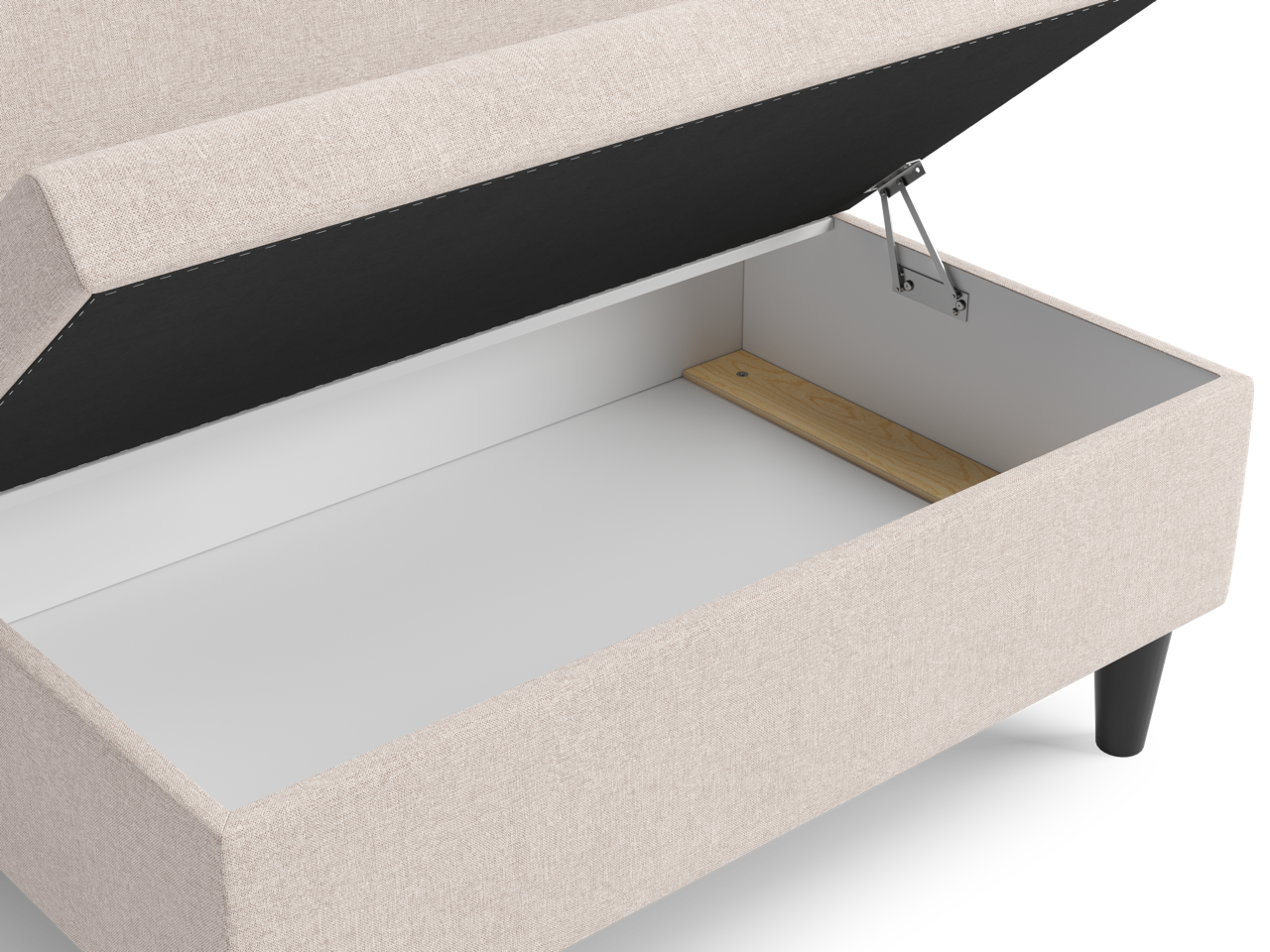 - Универсальность: компактность, универсальность и простота — диван можно использовать в любой зоне помещения, у любой стены или в углу, при этом использовать его можно и для сидения, и для хранения.