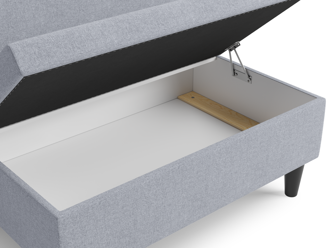 - Универсальность: компактность, универсальность и простота — диван можно использовать в любой зоне помещения, у любой стены или в углу, при этом использовать его можно и для сидения, и для хранения.