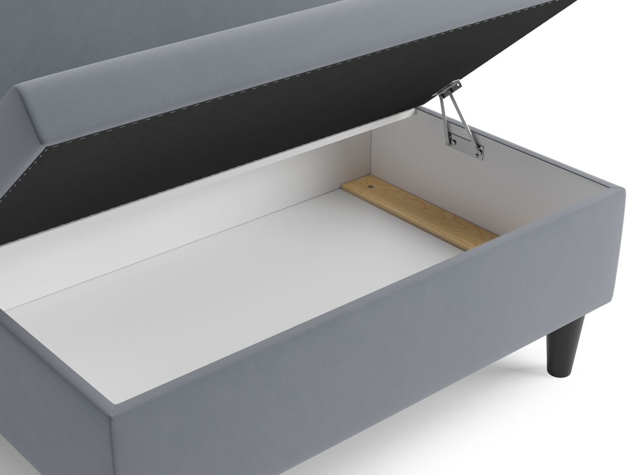 - Универсальность: компактность, универсальность и простота — диван можно использовать в любой зоне помещения, у любой стены или в углу, при этом использовать его можно и для сидения, и для хранения.
