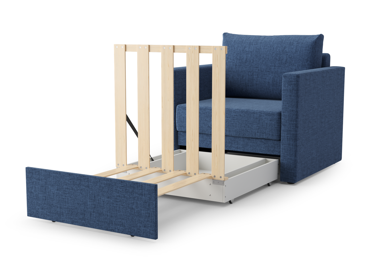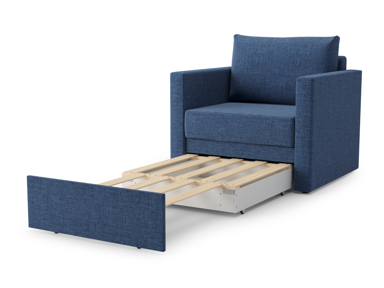 Кресло с узкими подлокотниками на базе вперёд-выкатного механизма с деревянными ламелями и спальным местом