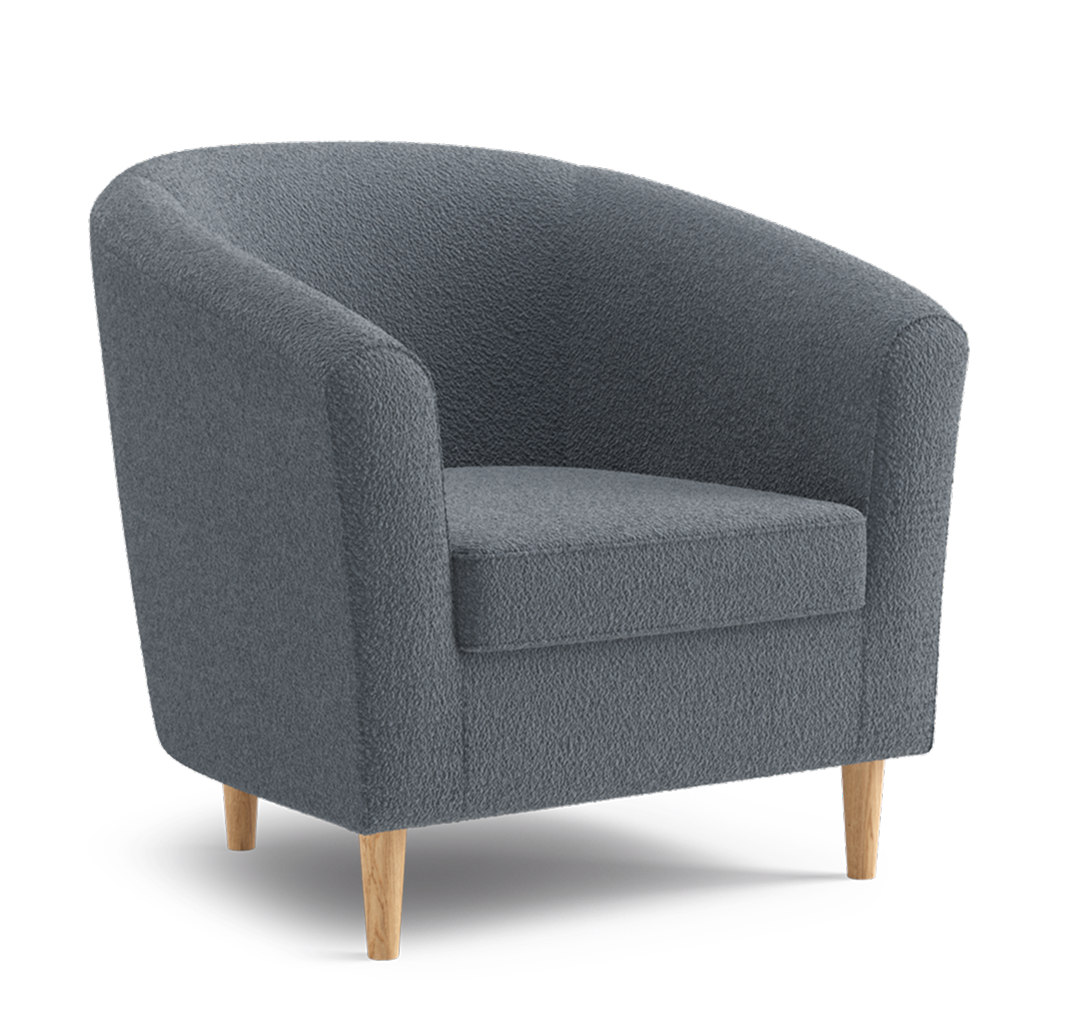 Кресло для отдыха на опорах из натурального дерева, с удобным посадочным местом и эргономичной спинкой по всему периметру сидения.